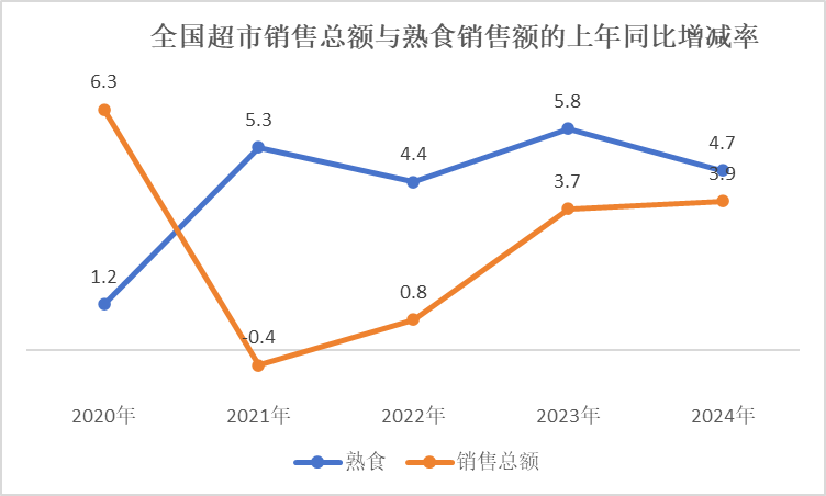 尽管便利店通过品类创新夺回了部分市场份额,但超市熟食的增长动能依然强劲。尤其在疫情后,食品超市与便利店在熟食销售额上的差距显著缩小,从2019年的6226亿日元急剧收窄至2024年的1381亿日元,逆转态势初显。根据全国超市协会《超市白皮书2025》的数据,自2021年起,熟食品类的销售额增速已持续超越超市整体水平,这标志着熟食已成长为食品超市创收盈利的关键增长点,同时也是其敏锐捕捉并满足顾客需求进而强化商圈顾客黏性的差异化王牌。